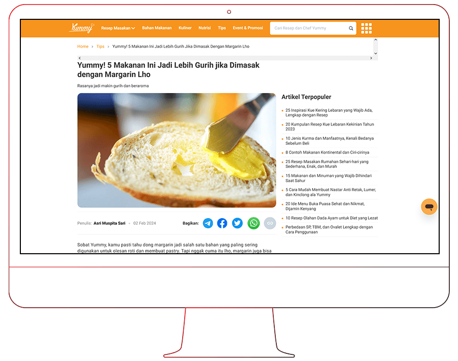 - Articles with Yummy's signature style, about culinaries, trends and news